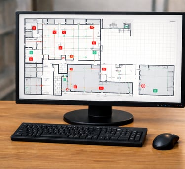 Análise do local, elaboração de planta técnica, definição dos sistemas de segurança e documentação para aprovação no Corpo de Bombeiros.
